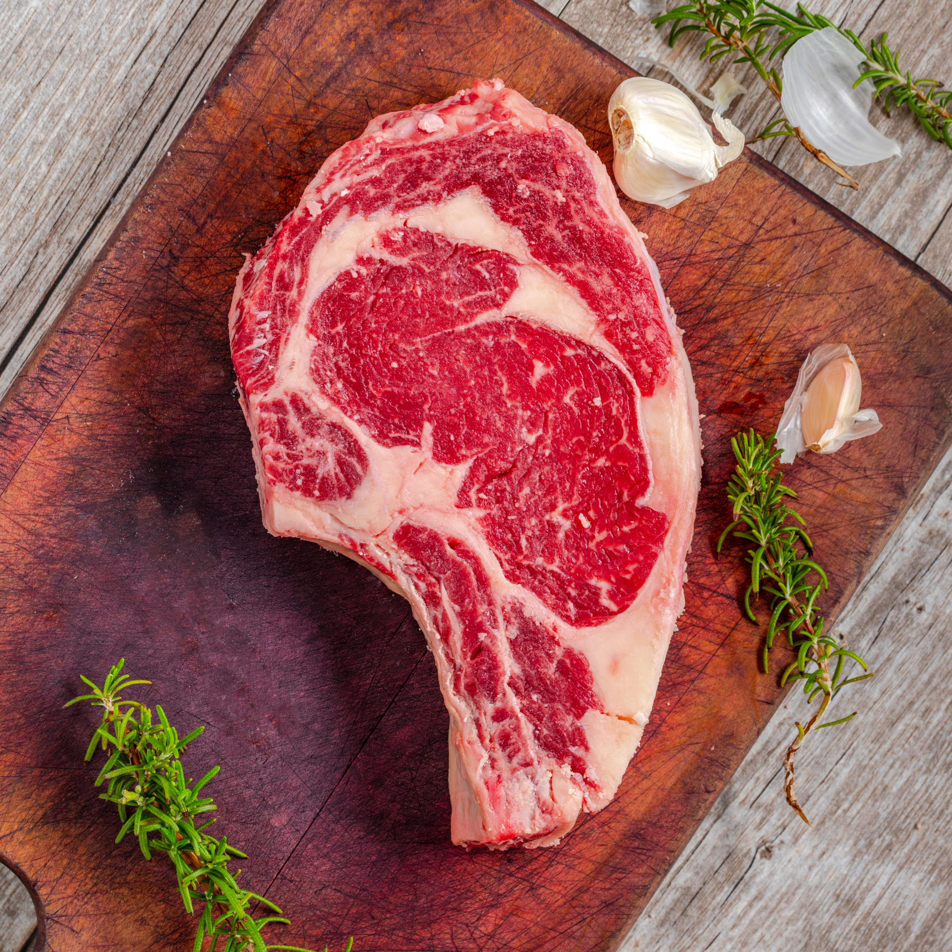 A bone-in ribeye is a thick, tender, and juicy cut of beef that comes from the rib of a cow. Also known as a cowboy steak. Bone-in ribeye steaks are known for their rich flavor, marbling, and tender texture.